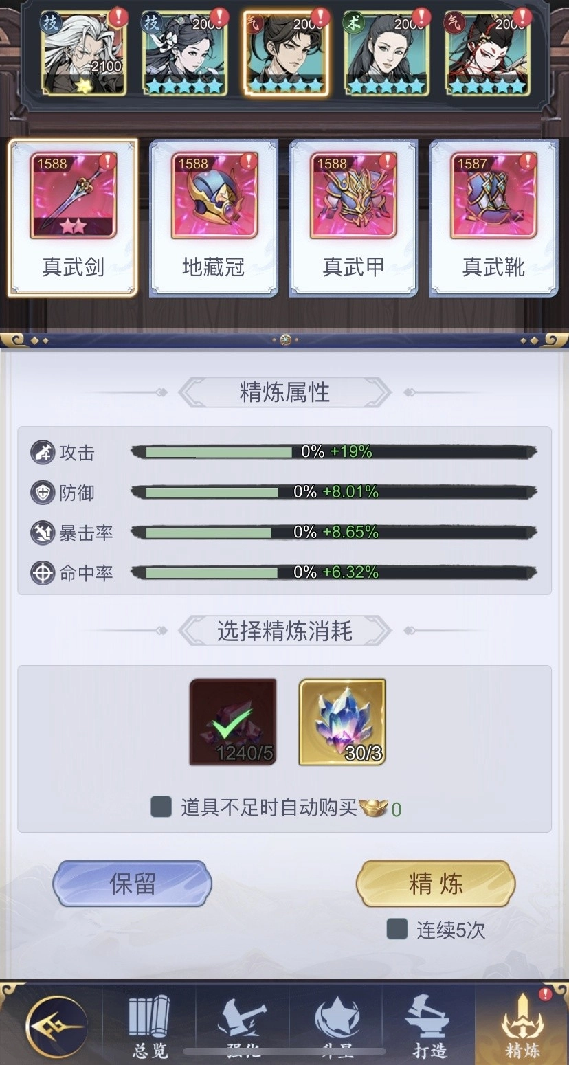 【作用】:消耗精铁进行强化操作,能够提升装备的属性数值。