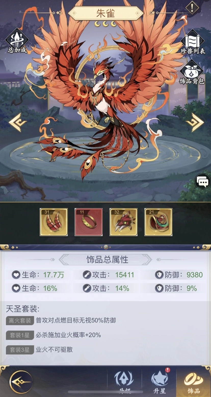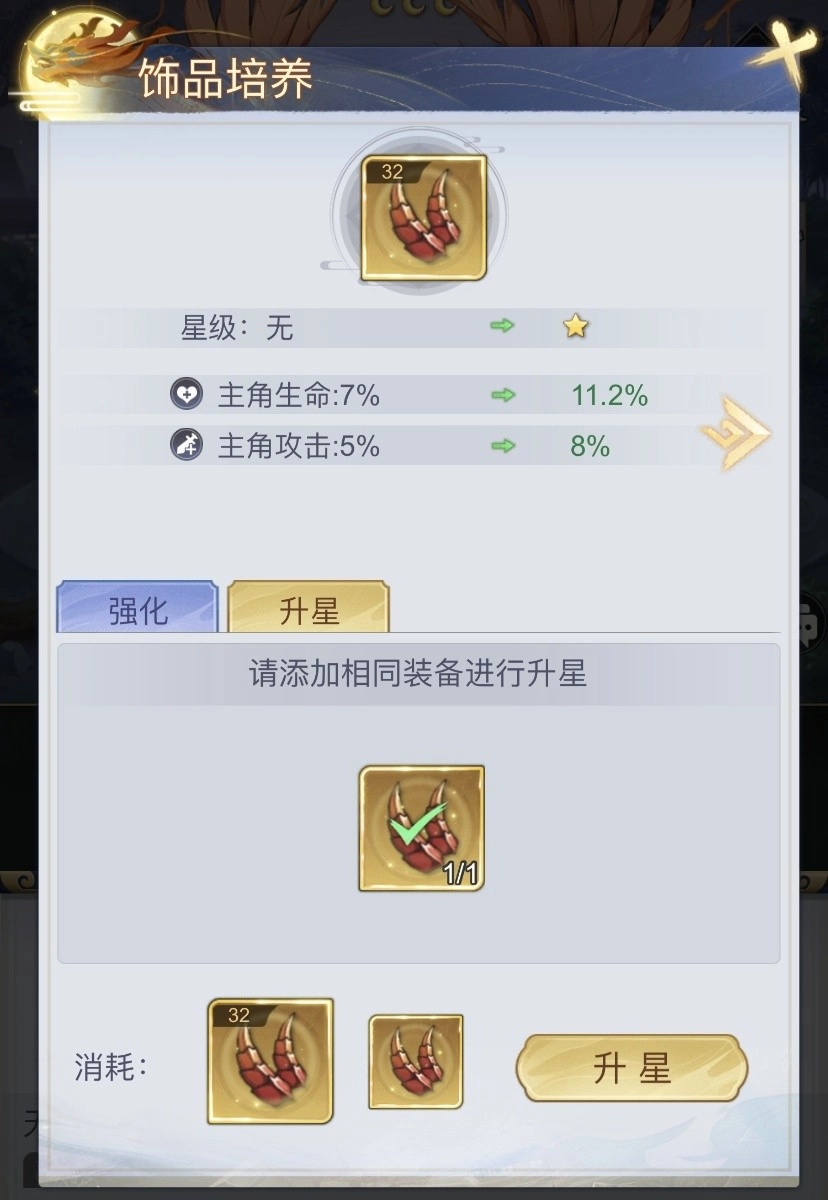 【升星】:珍兽饰品设有星级机制,若你持有相同的饰品,就能通过消耗它们来提升饰品的星级。