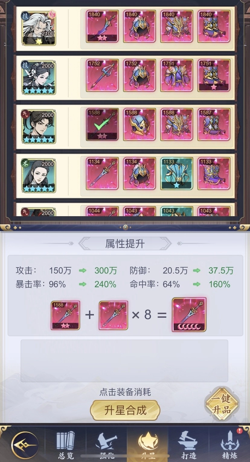 【作用】:消耗相同装备就能为装备升星,升星成功后可获取对应的升星属性加成。