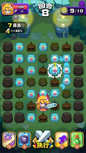 当连好路线后点击执行按钮就可以攻击这些怪物。