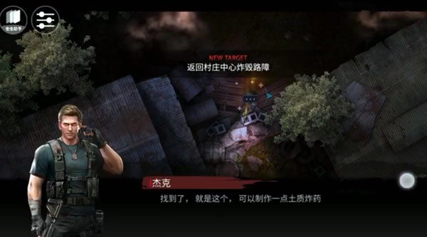 如图示,在此处找到土质炸药,返回村庄中心。