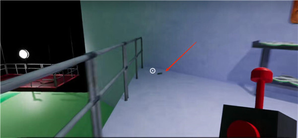 打开《班班乐园3》中文版,进入游戏后,首先得找到两枚电池。其中一枚位于挂着电视机的高台角落处,点击即可拾取这枚电池。