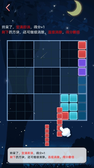 2、多种趣味十足的方块消除玩法,若能一次性消除更多方块,你将收获特殊的专属奖励。