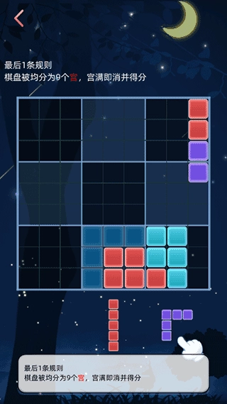 5、棋盘分为9个宫,宫满即消并得分