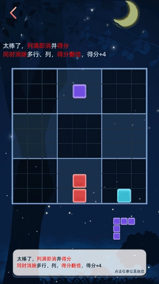 4、同时消除多行、列,得分翻倍