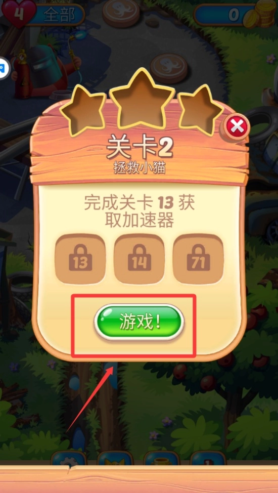 成功解救小猫后,点击屏幕中央闪烁的“游戏”字样,系统将自动生成新的关卡场景,难度会随着关卡的提升而逐渐增加。
