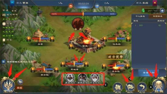 开启国战的时候会有提示的哦(也就是官渡啦~),并且还会显示具体的开启时间段~开启之后,就会进入到下图这个界面,每次官渡开启都会持续30分钟哦~