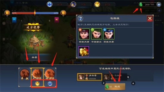二、编队的选择主要取决于你想使用哪支部队。这里给大家一个小建议:优先选择战力更高的部队,并且要考虑兵种相克的因素。举个例子,如果敌方是步兵营,我们可以选择弓兵营;但如果你的步兵营战力比对方高,那也可以直接用步兵营对抗~
