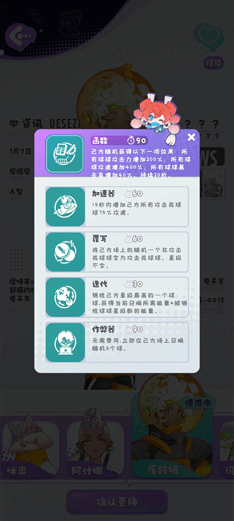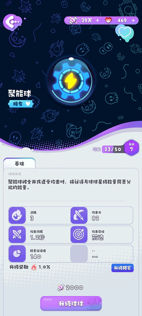 接下来要讲的是能量球,聚能球的最佳搭配是这位黑皮小姐姐。她的技能“覆写”能把我方场上非攻击类的球转化为攻击球,而聚能球的能量产出主要依赖升星过程——一旦升到三星,它就失去了产能的价值,这时正好可以用黑皮小姐姐的覆写技能来处理。不过要注意:聚能球最好逐个升星,也就是升完一个三星后就用覆写技能,再放置新的聚能球。因为覆写技能的目标是随机的,如果转化的不是已经没用的三星聚能球,而是还能产能的一星或二星聚能球,那就太不划算了。当然也可以根据实际情况调整,但最理想的状态还是等场上的聚能球都升到三星后再使用这个技能。