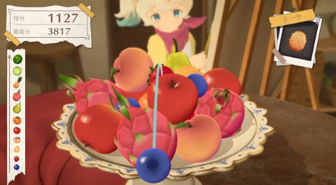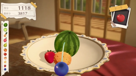 在水果山游戏里,你需要把同一种类的果实丢进碟子里,接着再将这些同种类的果实放进盘中;要是果实掉落了,比赛就会终止。