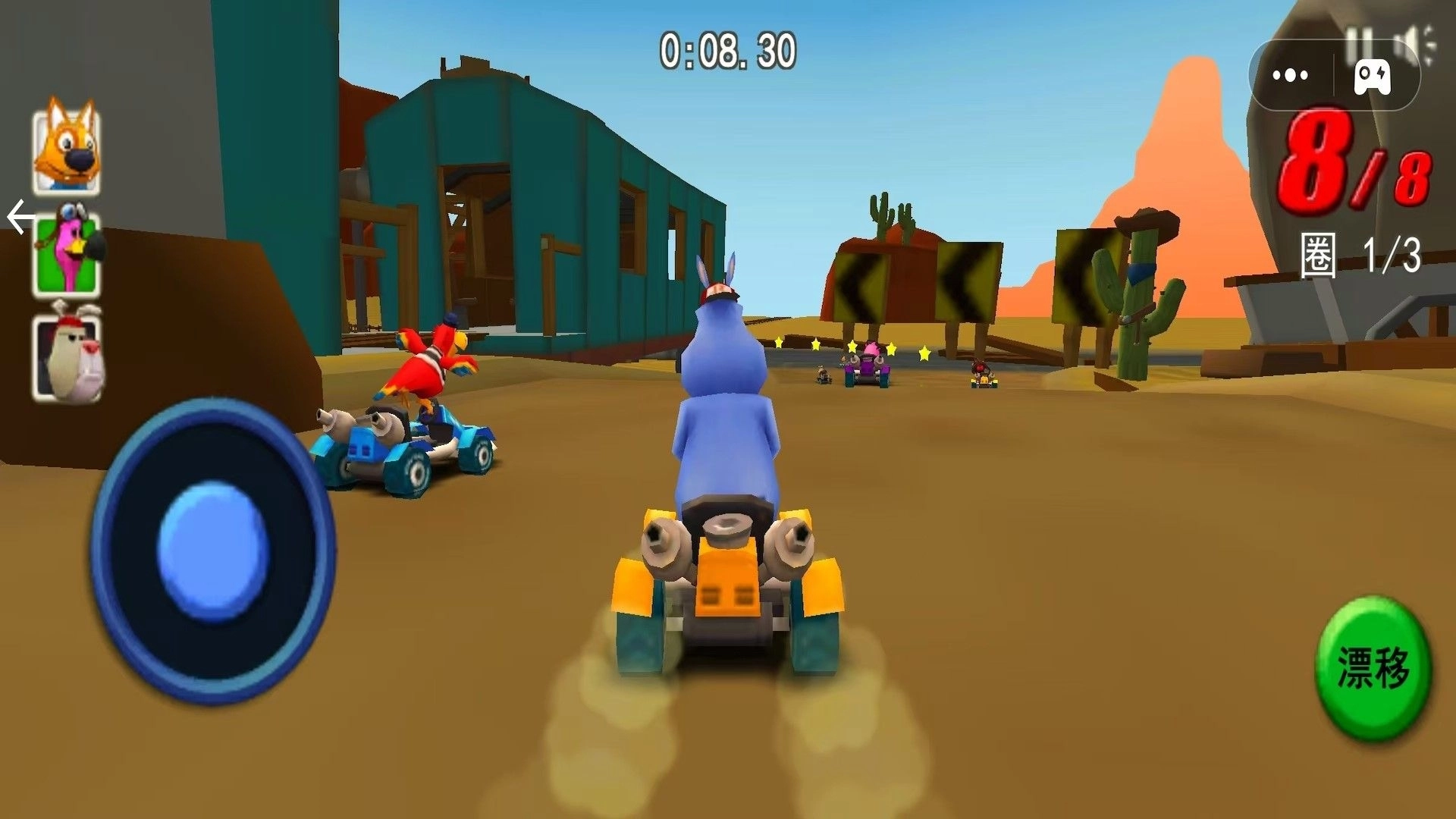 操控一个萌萌的角色在比赛里飙车,让这款游戏更添趣味。