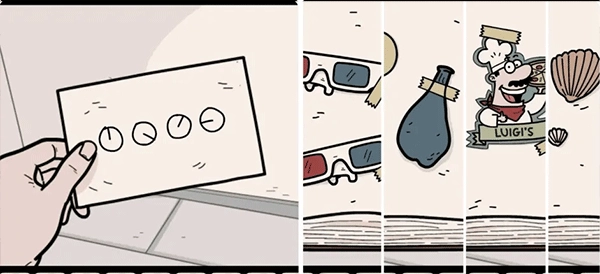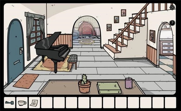 来到楼梯处,结合卡丽莎时间与笔记本中的提示,找到对应顺序(影院、气球、餐厅、海边)的四个符号,借助这些符号就能打开巴斯蒂安视角下的楼梯间,进而拿到玩偶。