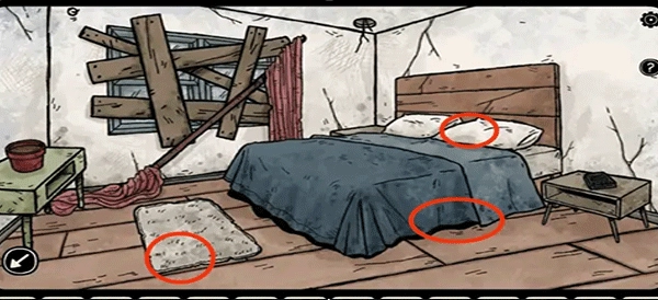 切换至巴斯蒂安,取下床底和垫子下方的半个面具与鱼钩,在枕头下面找到第二个收集物品。