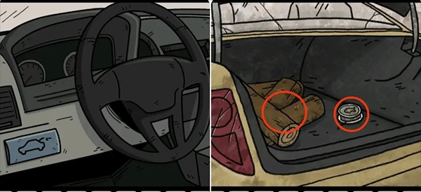 前往车库,用钥匙解锁车门并开启后备箱。副驾驶座位上放置着第四只收集要素,首先依据车库工具墙上工具的形状,打开后备箱内的盒子以获取红钥匙,随后切换至巴斯蒂安,取走后备箱里的木头与鱼线。