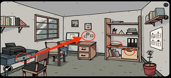 切换到卡丽莎的视角,她来到二楼,用红钥匙打开书房门。首先从书架上取走A4纸和钥匙形状的冰块,接着结合抽屉里的线索以及电脑旁的便签提示,打开了电脑。