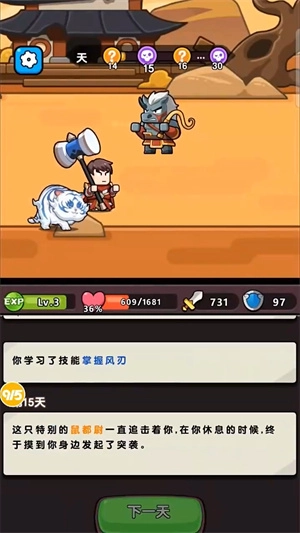 选好角色后,还得带着宠物一起闯关,途中会遇到不少随机事件,得灵活应对选择。