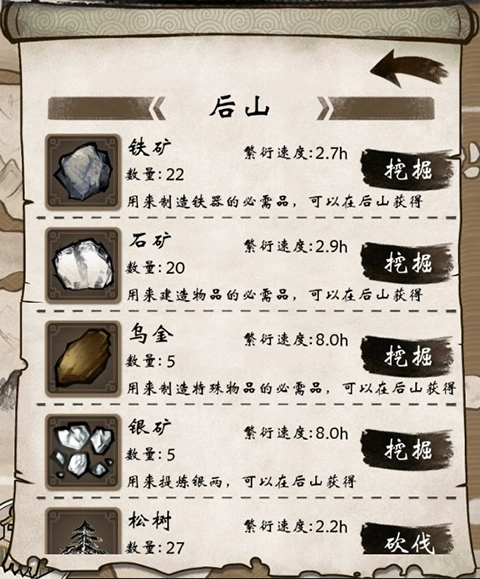 -前期优先去后山采集:8铁矿、2石头、5木头;