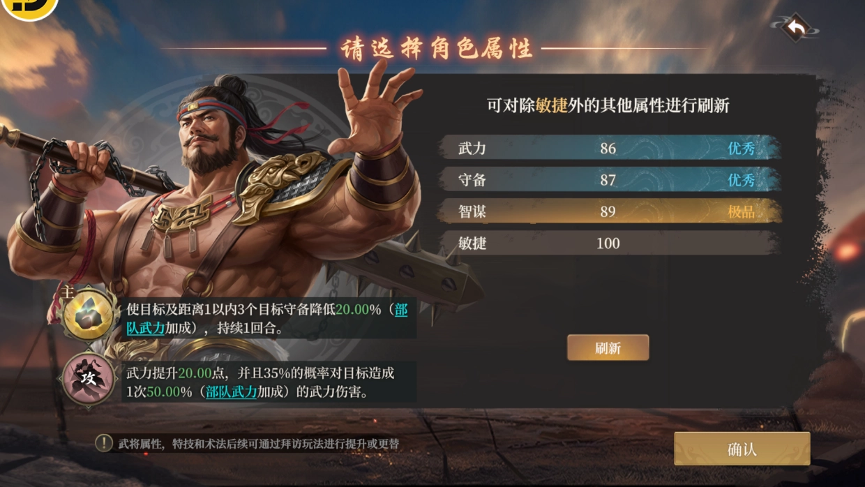 之后你可以在角色信息界面查看自己角色的属性,要是觉得不满意,还能点击刷新按钮进行更换。