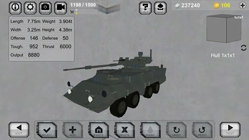 3D沙盒式战车游戏,你可以用各式各样的车身零件。