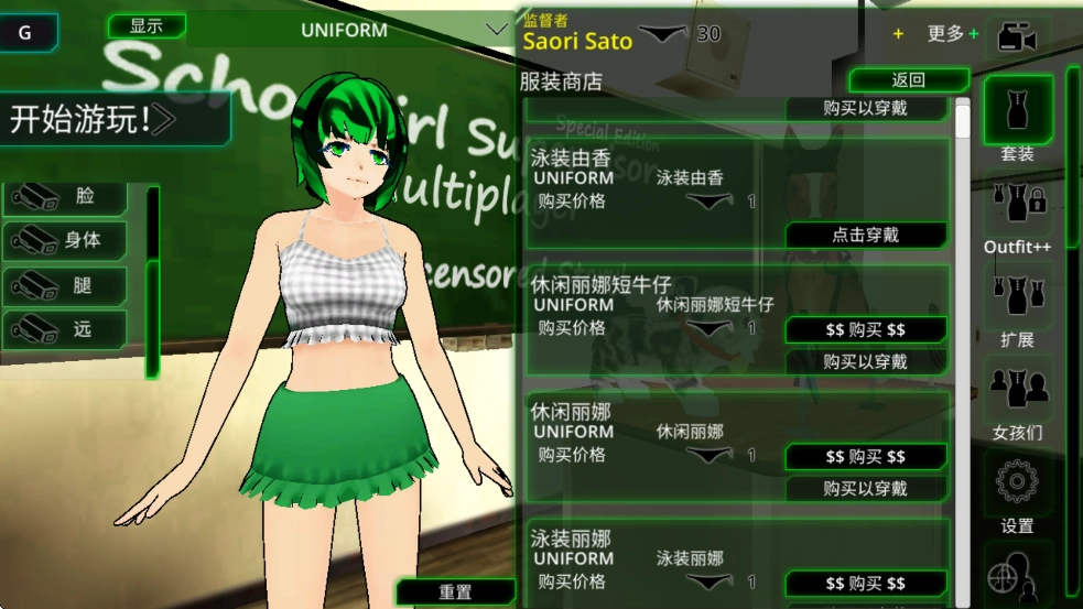 在套装列表中选择【校服】系列。