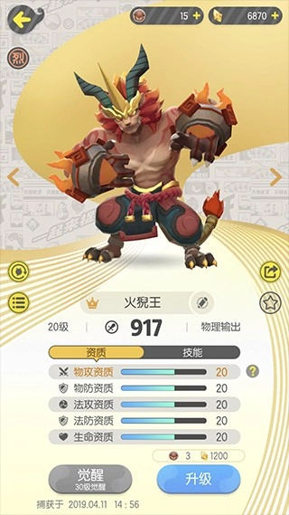 查看自己拥有的全部妖灵,能够选择对妖灵进行升级、回血、复活或放生操作。