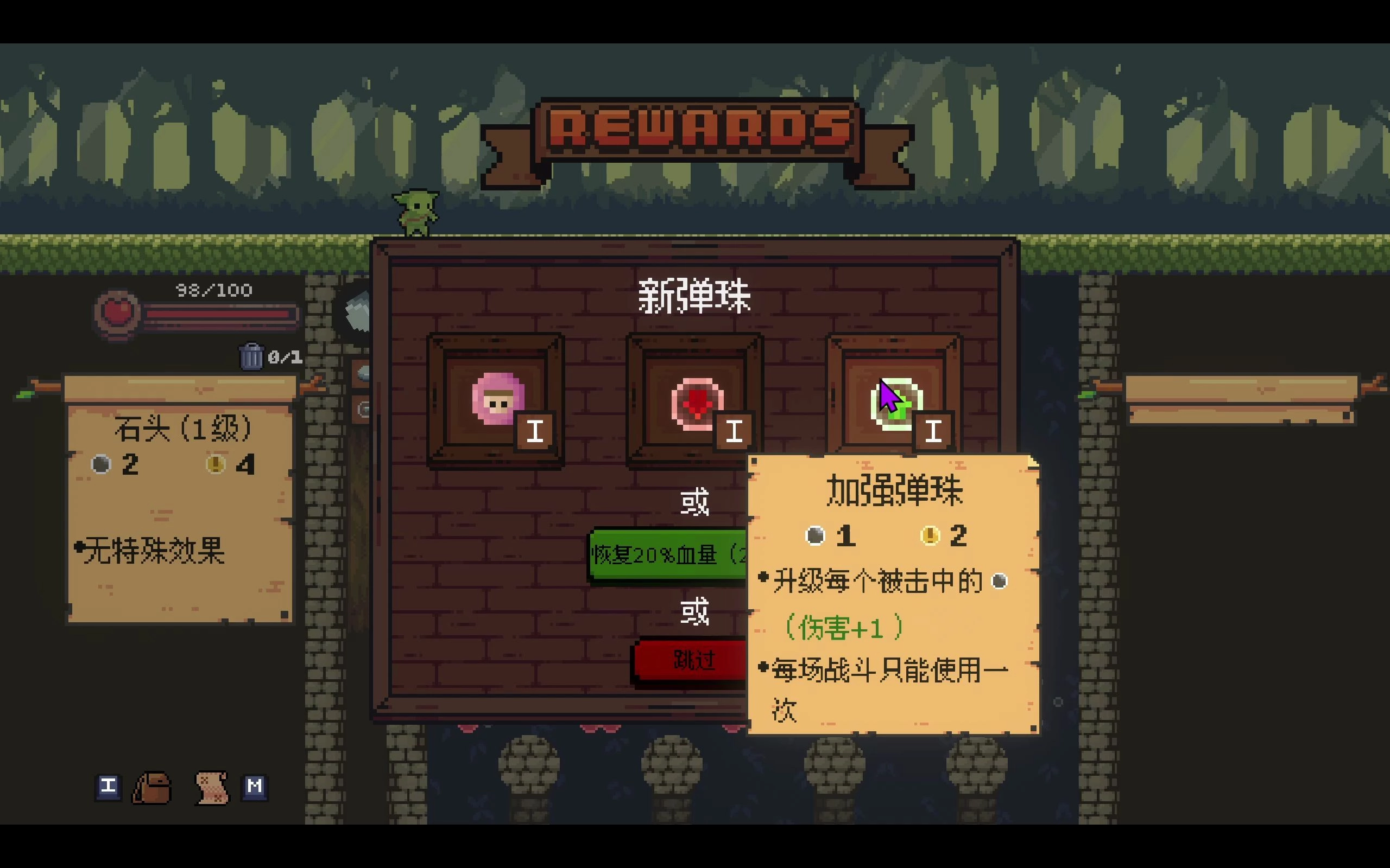 石头弹珠能增加1点攻击力和2点伤害,要是手头石头比较多的话可以考虑拿取。