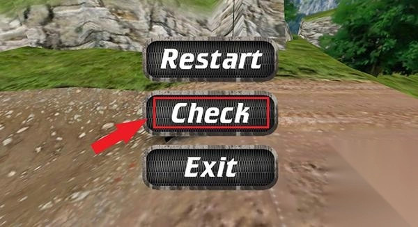 若玩家中途意外车毁人亡,可点击中间的“check”按钮进行时光回溯,回到存档点继续游戏。