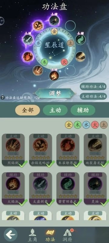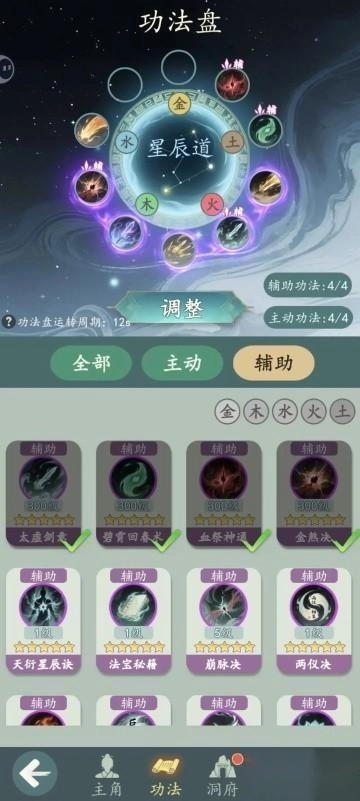 功法得按照上面图片里的位置来摆放,不然施法顺序容易出问题!要是前期不想看太多广告,也可以先用低阶但高星的功法过渡(毕竟星级高出手次数才多,这才是关键)