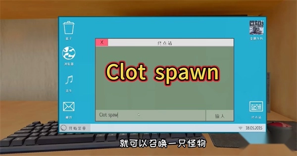 召唤怪物的方法是这样的:先打开电脑,输入代码“Clot spawn”,就能召唤出一只怪物。这时父母会惊慌失措,我们趁机打开大门直接跑出去就可以了。