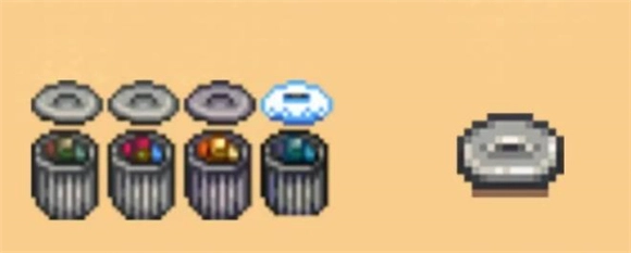 垃圾桶散布在鹑镇的建筑物周边。在游戏里点击右键能翻转垃圾桶,有几率从中找到有用的物品。整个镇上总共有八个垃圾桶,它们的位置分别是:星之果实餐吧旁边、1河间大道附近、镇长的庄园周边、1柳巷旁、2柳巷处、铁匠铺旁边、博物馆附近,还有JOJA超市(或者是在它原来地址上改建而成的电影院)的周边。