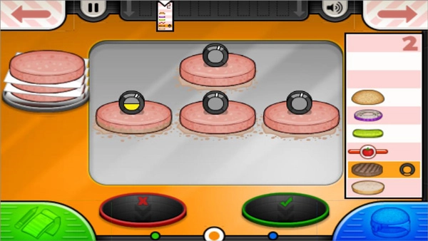 从操作布局来看,它其实不算复杂,但由于对汉堡制作流程做了细化拆分,实际操作时会因具体需求的差异而变得有些繁琐——像食材切割的比例、配料摆放的位置等细节都得精准把控,这就同时考验着玩家的记忆能力与操作技巧。