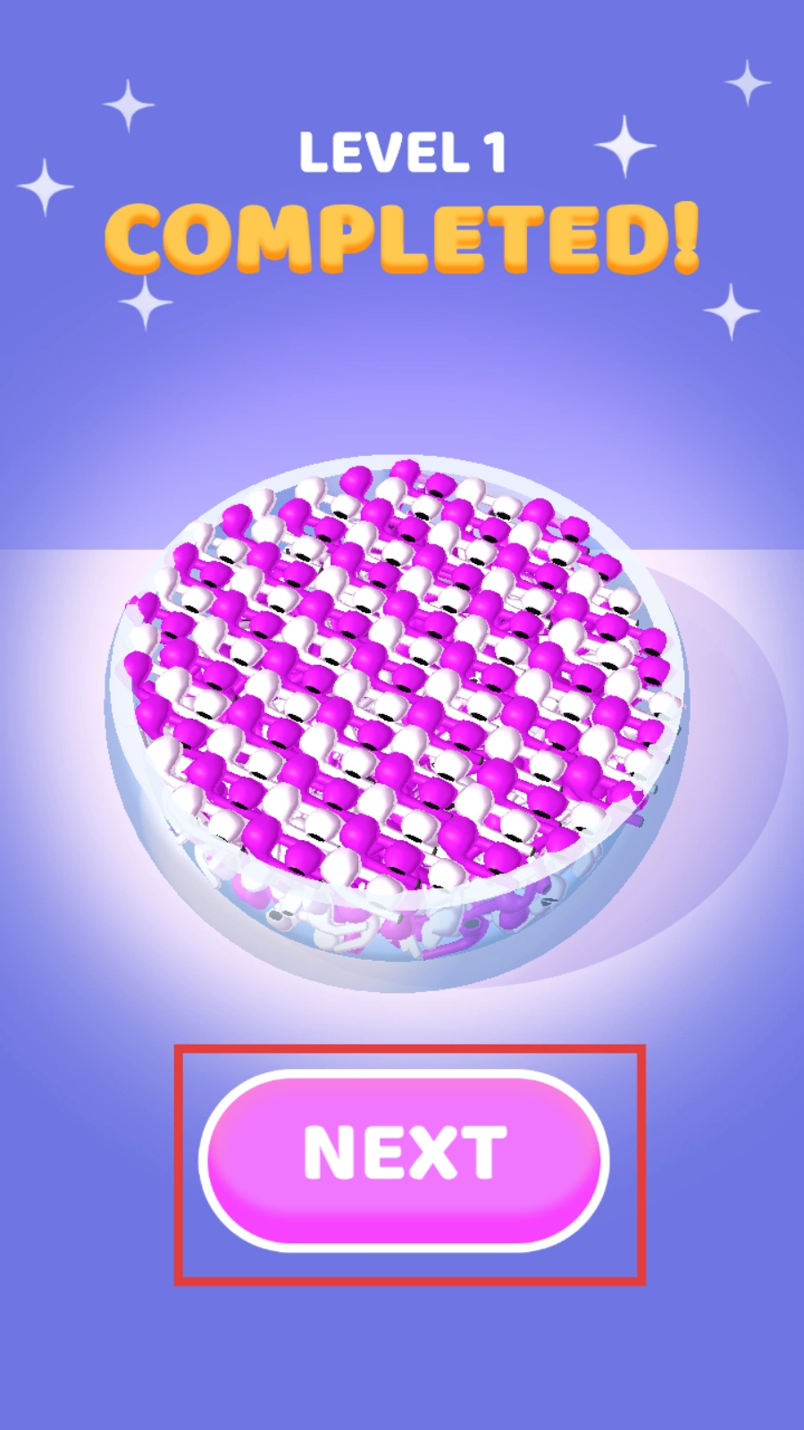 1、启动游戏,轻触屏幕,开启第一关的解压挑战之旅。