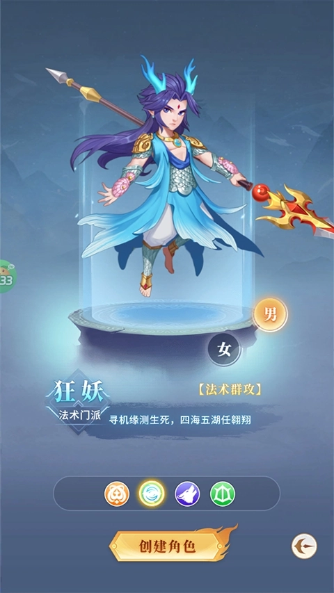 1、进入《大圣觉醒》游戏后,玩家能够挑选一个职业开启游戏之旅。