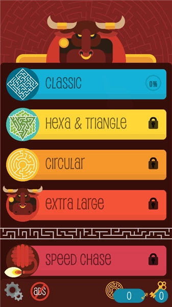 2、这里有三种不同颜色主题的简约复古2D设计,你可以查看各种各样的迷宫形状、大小以及游戏模式。