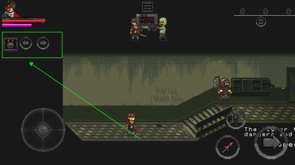 5、左侧的操控盘用于控制角色移动,点击刀剑即可对丧尸发起攻击;