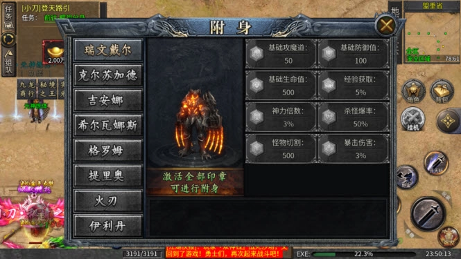 2、附身机制:收集全部印章后,即可开启附身功能,从而获取强大属性加持。
