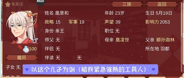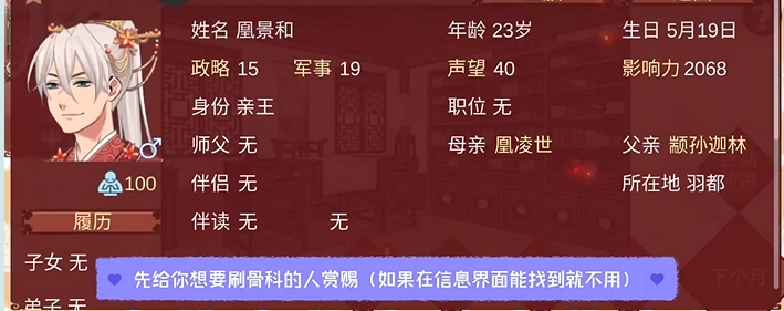 5.回到女帝的履历中找到被赏赐的那个儿子,点击对他进行宠幸操作,此时点击一次宠幸后,该按钮就会消失。