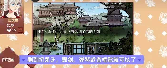 4.刷到扔果子、舞剑以及弹琴唱歌的剧情就可以了