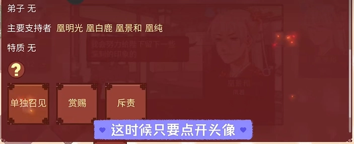6.之后点击这个儿子的头像,选择单独召见,重复此操作即可快速刷新骨科相关内容。