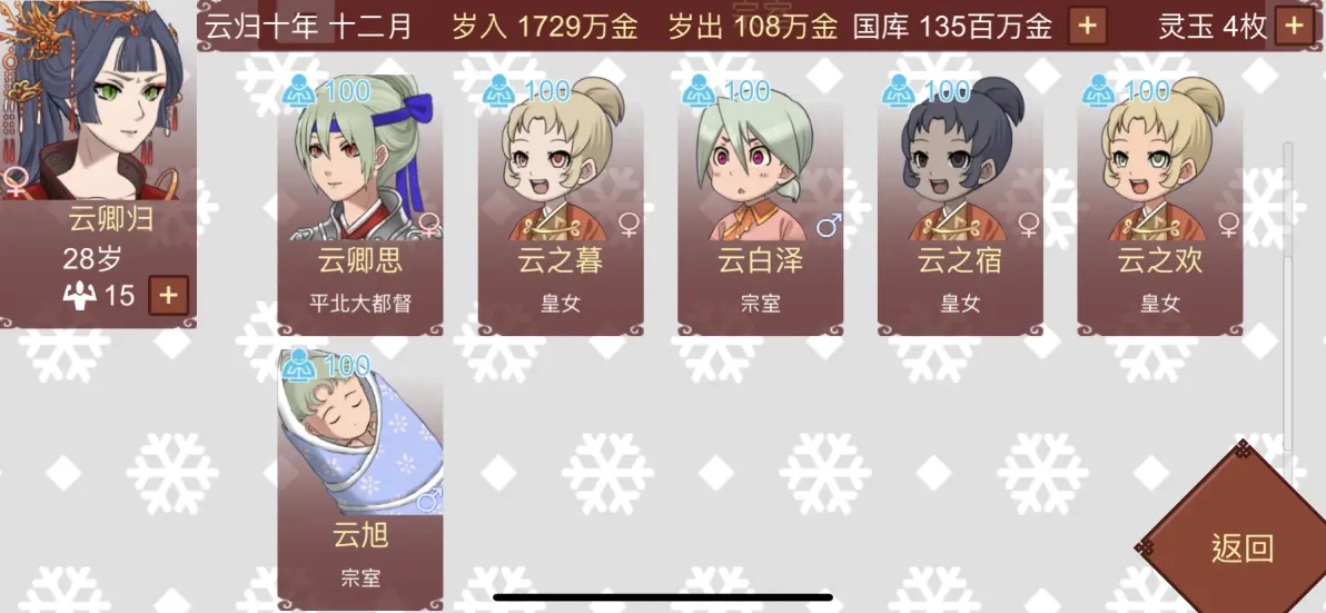 《女帝的日常》是一款国风休闲文字剧情游戏,玩家将化身为权倾天下的女帝开启游戏之旅,在这里可以一步步实现自己的帝国宏图。你需要运用多样化的治国策略来让国家军力强盛、百姓生活安定富足,同时还得时刻留意国库的资金状况——这可是衡量国运是否昌隆的关键指标之一。