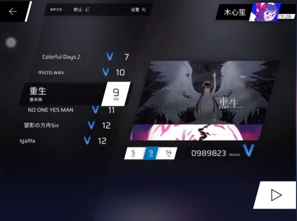 4、进入主题之后就能选择不同的曲子进行挑战了。