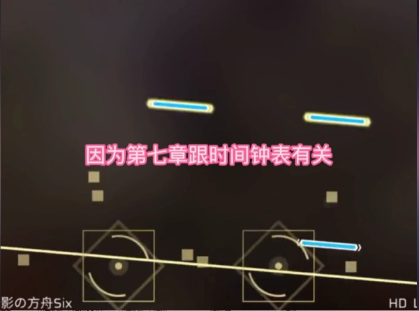 3、接下来挑战《方舟》这首曲子。由于第七章和时间钟表相关,所以要注意:那些下落速度与其他键不一样的音符不能点击,比如明显比其他音符慢的就不要点。
