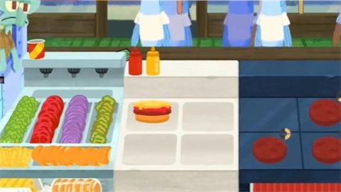 4、把肉饼煎好,夹进汉堡里,做好就能递给顾客了。记得用蟹老板的爪子来收集金币。