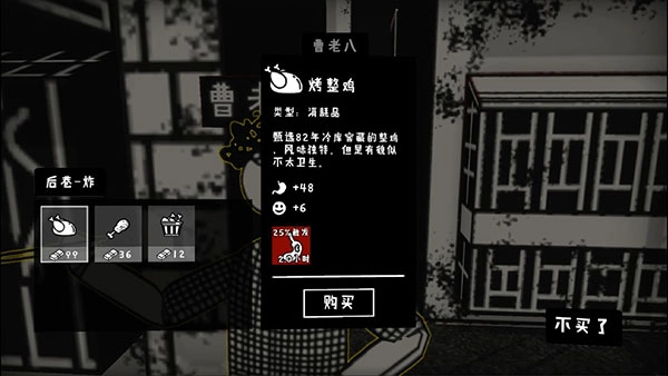 忙碌一天后,你得用一顿丰盛的晚餐来犒劳自己的肠胃;要是角色生命值太低,不仅没法继续打工赚钱,还可能会生病;万一真生了病,那可是要花不少钱的。