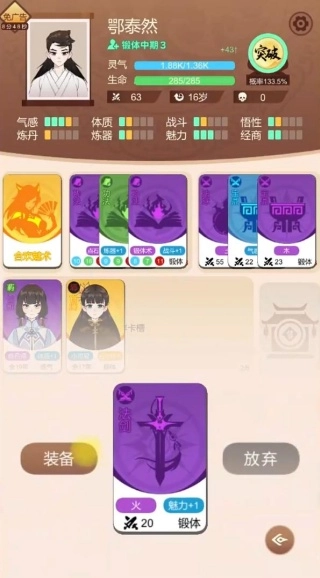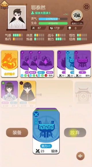 1. 首先抽取基础功法卡,借此稳固灵根属性,进而提高修炼效率与灵气储备量。