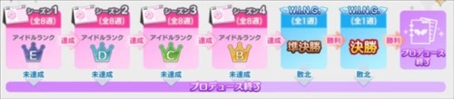 WING比赛的难度比之前所有试镜都要高,并且只有获得第一名的选手才能成功晋级。想要有较大的获胜机会,必须满足三个条件:一是退伍搭配得十分完善,二是头四轮的育成工作做得很好,三是在决赛时具备一定的运气——比如流行的属性刚好是自己主力培育的属性。一旦获胜,就会解锁新的剧情,同时也意味着偶像培育任务的完成。