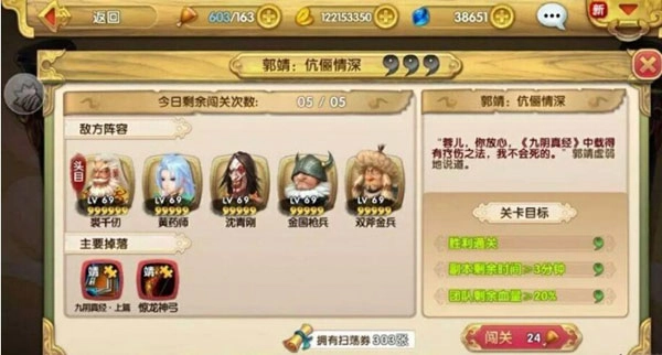 之后点击“前往”就能看到关卡的部分信息,接着点击“闯关”。需要留意的是,每次闯关要消耗24点体力,我们得打20次。