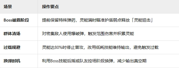 特殊弹药强化:使用特殊弹药能够增强技能效果,像穿甲弹会附带破盾效果,爆破弹可造成范围伤害。