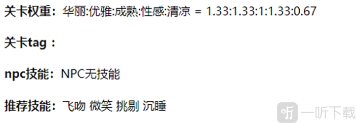 关卡权重:华丽:优雅:成熟:性感清凉= 1.33:1.33:1:1.33:0.67