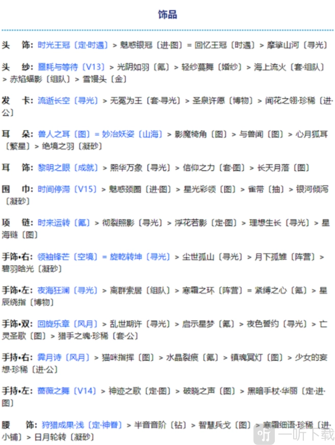首饰双:回旋乐章[风月]>乱世期许[寻光]>启示星梦[氟]>夜色誓约[寻光]>亡灵圣歌[图]>猎手之魂:珍稀[套公]